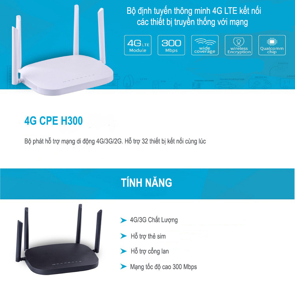 Thông số kĩ thuật của bộ phát wifi 4G CPE H300