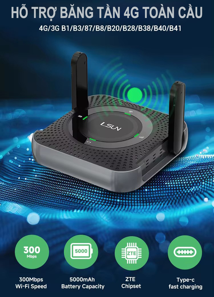 - Sử dụng bộ phát wifi 4G cho tốc độ lên tới 300Mbps.