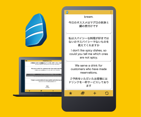 Giọng nói được nói với Pocketalk được phiên âm trên Internet và được dịch, tổng hợp giọng nói và được giải thích ngay lập tức bởi công cụ tối ưu.