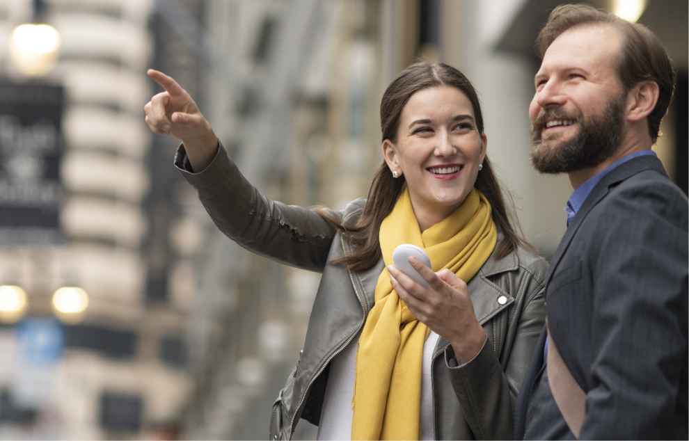 Pocketalk được trang bị micro kép có chức năng khử tiếng ồn và hai loa 1,5W. Bạn có thể nói chuyện thoải mái ngay cả trong đám đông.