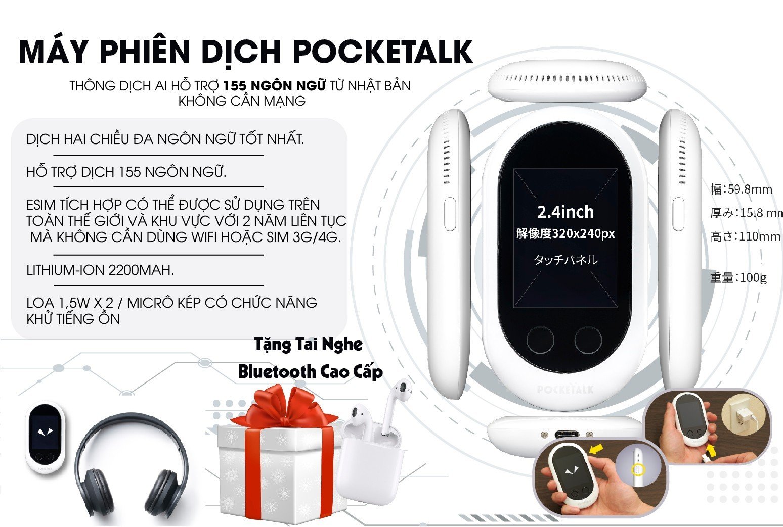 Thông số kĩ thuật của máy phiên dịch Pocketalk